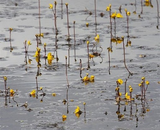 L’utriculaire commune est une plante carnivore, belle floraison jaune d’or dressée au dessus de l’eau. Le feuillage est très fin, il est muni de sacs appelés utricules. Ce sont des pièges qui lui servent à capturer les micro-organismes. Très oxygénante.