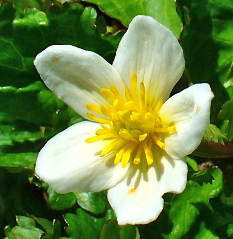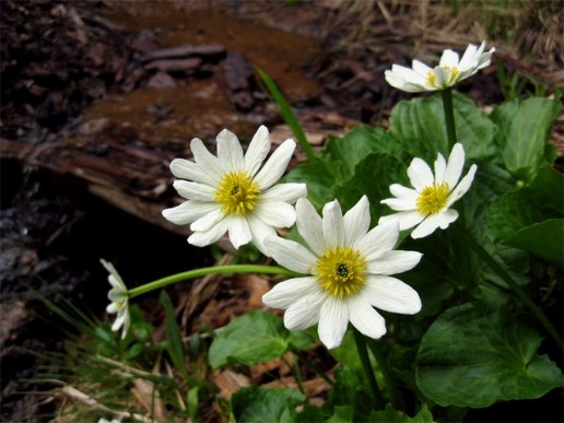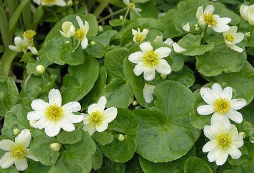 Le populage des marais est une vivace de bord d'eau. Son feuillage est arrondi aux bords dentelés, les fleurs d’un blanc pur au cœur jaune ; souvent l’une des premières fleurs aquatiques de la saison à partir de mars, puis refleurit en automne. Toute la plante est toxique.