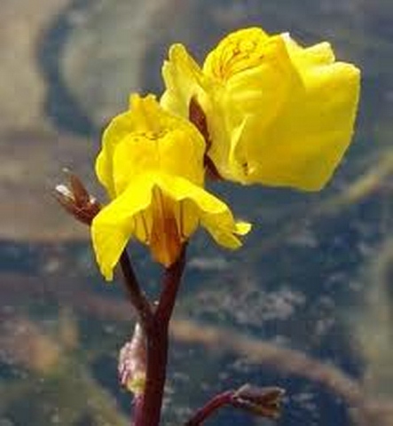 L’utriculaire commune est une plante carnivore, belle floraison jaune d’or dressée au dessus de l’eau. Le feuillage est très fin, il est muni de sacs appelés utricules. Ce sont des pièges qui lui servent à capturer les micro-organismes. Très oxygénante.