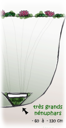 Le principal critère à prendre en compte lors du choix du nénuphar, en dehors de l'esthétique, est la profondeur de plantation. Elle représente la distance entre la surface de l'eau et la surface du substrat dans lequel est planté le rhizome.